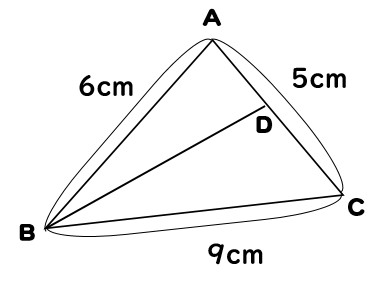 次の△ABCにおいて、∠ADB=∠CDBのときADの長さを求めよ。