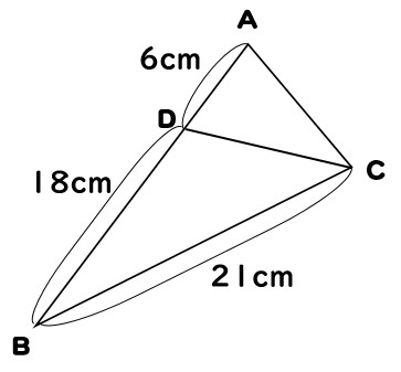 線分CDが∠ACBの二等分線になっているので、 ゆえにACは\(7cm\)です。