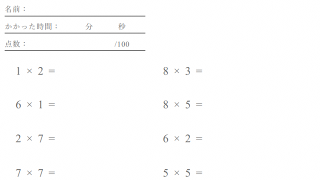 計算ドリル/問題集【小学校算数】 1桁同士の掛け算(九九)【計算ドリル/問題集】