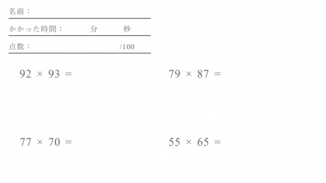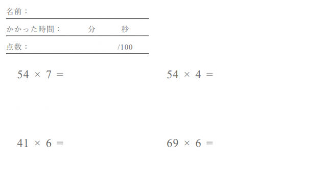 2桁×2桁のかけ算の問題集です。かけ算の筆算の練習におすすめです。
