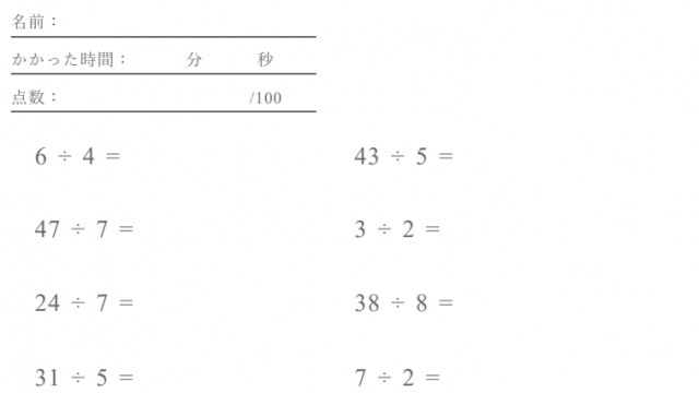 計算ドリル/問題集【小学校算数】 あまりが出る割り算(商は1桁)【計算ドリル/問題集】