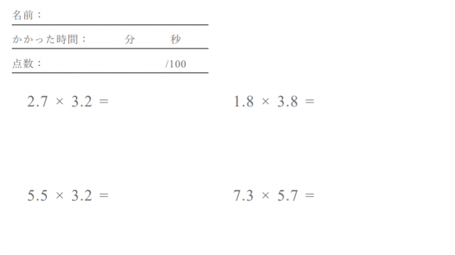 計算ドリル/問題集【小学校算数】 小数の掛け算(2桁~3桁)【計算ドリル/問題集】
