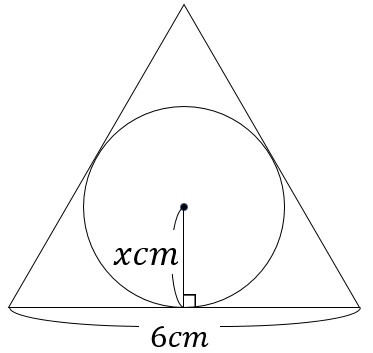 一辺の長さが6cmの正三角形に、内接する円の半径を求めよ。